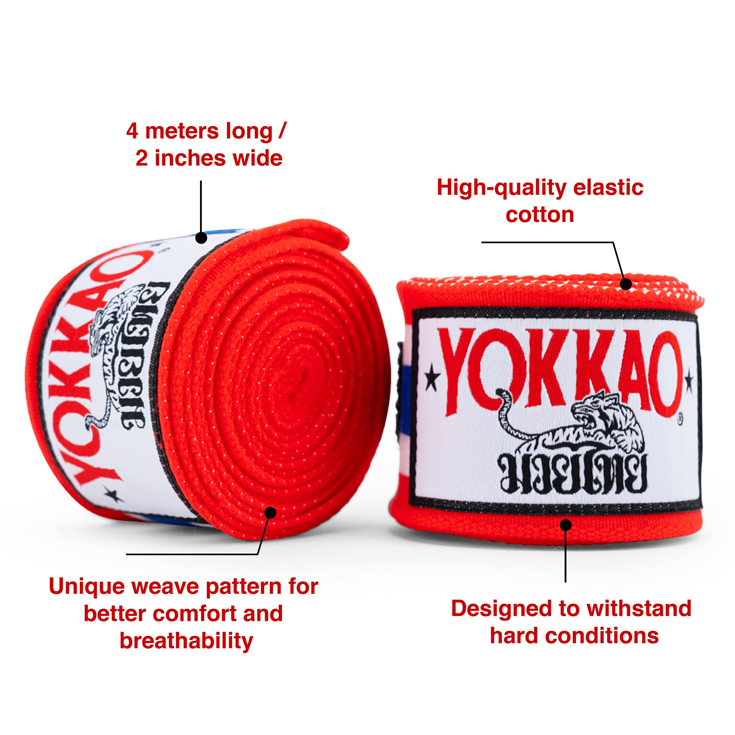 - Comfort and Flexibility: YOKKAO's hand wraps are designed for a secure and comfortable fit. The elastic cotton blend material offers the perfect balance between flexibility and support, allowing for easy wrapping and unwrapping.